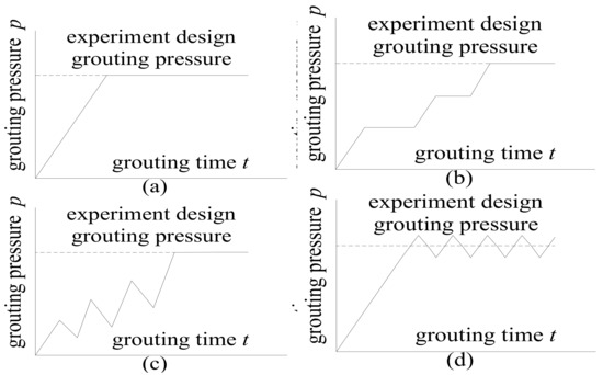 Variation forms of grouting pressure: (a) Linear growth; (b) Cyclic growth; (c) Fluctuation stability; and (d) Slow growth.