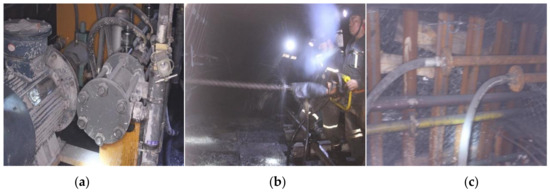 - Shimada, H.; Hamanaka, A.; Sasaoka, T.; Matsui, K. Behavior of grouting material used for floor reinforcement in underground mines. Int. J. Mech. Sci. 2014, 28, 133–148. [Google Scholar]