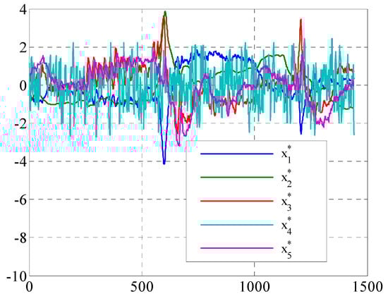 The same with the population principal component analysis, in order to eliminate the influence of dimension, we can use the method in Equation (10) to normalize the sample, that is, let