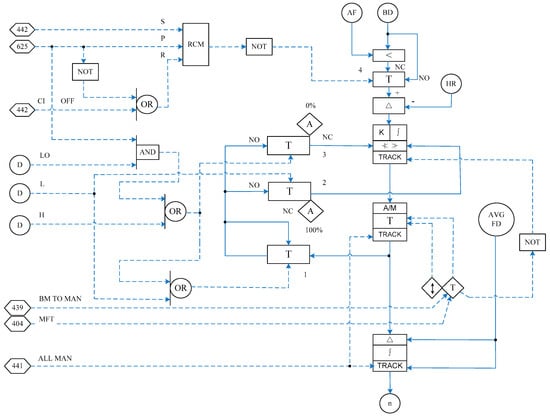 For the fuel into the furnace to be fully burned, which is directly related to the economy of boiler combustion, the air flow into the furnace should be controlled. The larger is selected between the heat signal (HR) and boiler main directive (BD), realizing the cross restriction of wind and coal, and to make the total amount of wind always been richer than fuel. When the load increases, that is, when the main instructions of the boiler increases, first add the wind, then add coal; when the load reduces, first reduce coal, then reduce wind. The SAMA diagram of the air volume control system is shown in Figure 32.