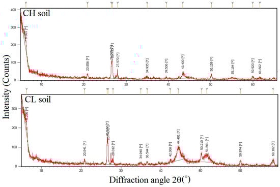 Two samples of locally available natural cohesive soils were used in this study. The samples were obtained close to the soil surface and were representative of natural alluvial deposits common in major parts of Punjab province in Pakistan. One of the samples was procured from Nandipur near Gujranwala, Punjab and the other from Defence Housing Authority (DHA), Lahore. Grain size distribution, illustrated in Figure 1, shows the Nandipur and DHA soil samples to be classified as CH (A-6 (10)) and CL (A-7-6 (20)) per the Unified (AASHTO) Soil Classification System. To avoid the possible influence of vegetation, fill material and other organic matter, soil samples were procured from around 1.0 m deep test pits rather than from the surface. X-ray diffraction (XRD) analysis of the soil samples (see Figure 2) revealed the presence of kaolinite in CL soil and illite in CH soil as dominant minerals. The soil samples’ physical and chemical properties are summarized in Table 1.