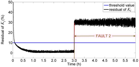 Residual of the estimated model parameter for faulty scenario 2.