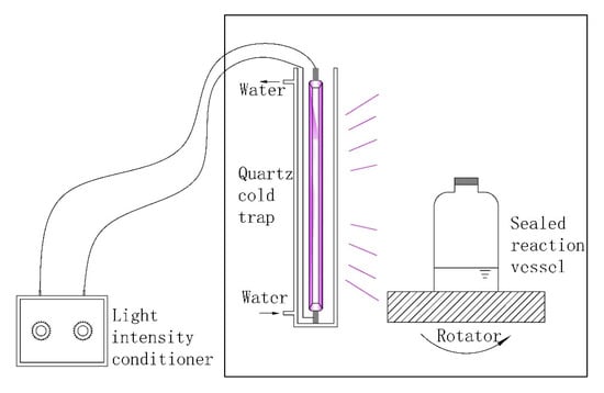 The scheme of our preparation device is shown in Figure 1. The NP was prepared as follows. Acrylamide, DAC, deionized water, and urea, which acted as a cosolvent, were added to a reaction vessel made of silicate glass. Ammonium persulfate, V50, and sodium bisulfate were added during the purging of nitrogen gas for 30 min prior to UVA activation. Ultraviolet light (Jiguang Special Lighting Electric Factory, Shanghai, China) was generated using a 500 W high-pressure mercury lamp (wavelength in the range of 300 to 400 nm and main wavelength at 365 nm) and a light intensity conditioner. As shown in Figure 1, light intensity can be adjusted through a conditioner and an irradiance meter to a specific value. Light intensity was controlled for a specific period, and the intensity was adjusted for another specific period. Flocculant was produced, and the aqueous solution was changed into a translucent colloid. Scheme 1 showed the copolymerization reaction of AM and DAC. During polymerization, some poly acrylamide (PAM) and poly (acryloxyethyltrimethyl ammonium chloride) PDAC may be produced. The products were purified with acetone and ethanol for several times to remove residual monomers. The purified products were then dried and ground into powder. The procedure and conditions of CPAM prepared by a stable UVA light intensity and a single initiator system (SP), PAM, and PDAC preparation were based on previous studies [,].