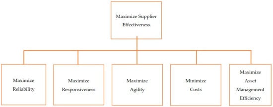 Numerous survey studies have recently focused on supplier selection problems. For example, Luzon and El-Sayegh [] used AHP and Delphi to select criteria for oil and gas projects in the United Arab Emirates (UAE). Rentizelas et al. [] introduced social sustainability in the oil and gas industry. Sivapornpunlerd and Setamanit [] applied AHP for supplier selection for an offshore oil and gas exploration and production company. The best suppliers were selected based on four main criteria, namely: quality, delivery, service, and flexibility, with 18 sub-criteria.