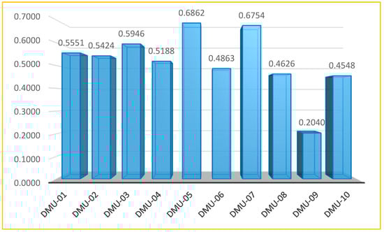 The proposed model is used to rank potential suppliers of a well-known gas and oil industry in Vietnam. After the preliminary evaluation, 10 potential suppliers (DMUs—Decision-Making Units) were selected by interviewing experts and heads of the procurement department based on their product capacity, time of delivery, supplier’s location, unit price, etc. A suppliers list and their corresponding symbols in the proposed model are shown in Table 3.