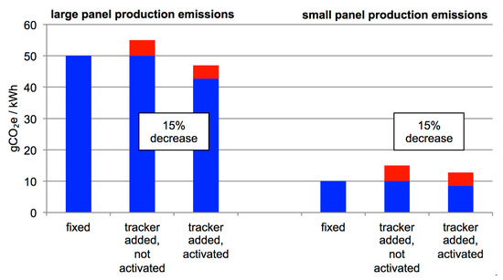 - Bayod-Rújula, Á.A.; Lorente-Lafuente, A.M.; Cirez-Oto, F. Environmental assessment of grid connected photovoltaic plants with 2-axis tracking versus fixed modules systems. Energy 2011, 36, 3148–3158. [Google Scholar] [CrossRef]