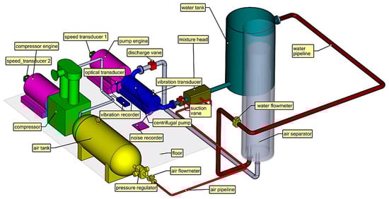 Xu et al. [] show a good synthesis of visual methods used to investigate various types of flow, particularly two-phase mixtures. The importance of optical monitoring is that it allows experiments without any direct contact with the monitored process. However, when investigating real machineries, such as pumps, it is not possible to use transparent sections for optical monitoring, because of material limitations. Therefore, our experimental design was developed around two other investigation techniques: vibration analysis and sound processing. Both technologies imply large data volumes generation, and real-time processing and analysis.