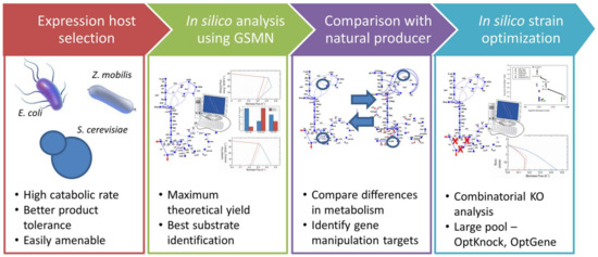 - Blazeck, J.; Alper, H. Systems metabolic engineering: Genome-scale models and beyond. Biotechnol. J. 2010, 5, 647–659. [Google Scholar] [CrossRef] [PubMed]