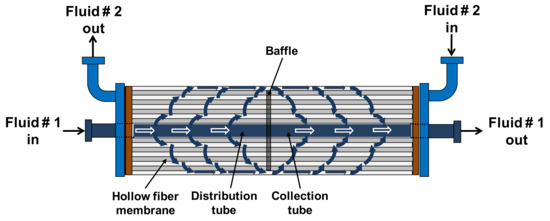 - Zheng, J.M.; Dai, Z.W.; Wong, F.S.; Xu, Z.K. Shell side mass transfer in a transverse flow hollow fiber membrane contactor. J. Membr. Sci. 2005, 261, 114–120. [Google Scholar] [CrossRef]