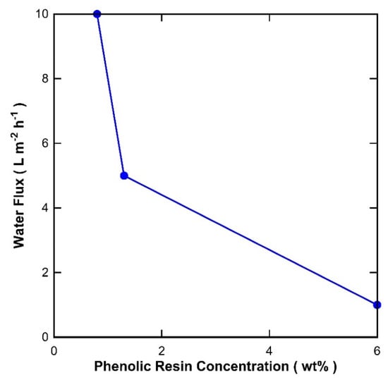 Pure water flux (±8%) of membranes impregnated with phenolic resin of 1 wt % in the first-step and varying phenolic resin concentration in the second step.