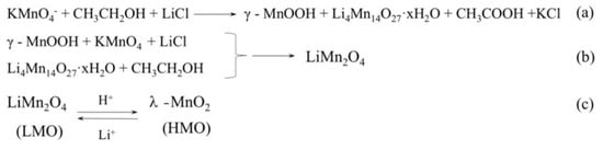 - Ooi, K.; Miyai, Y.; Sakakihara, J. Mechanism of lithium (Li+) insertion in spinel-type manganese oxide. Redox and ion-exchange reactions. Langmuir 1991, 7, 1167–1171. [Google Scholar] [CrossRef]
