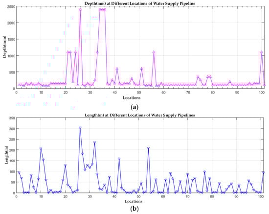 Different parameters that can affect water supply pipelines are age, leakage, depth and height, soil temperature, water temperature, soil moisture, soil electrical resistivity, etc. [3,4,5,6]. Ageing is an important factor for estimating the water supply pipeline risk. A pipeline’s fitness may degrade with the passage of time. In this study, we considered the leakage, depth, age, and length factors, because these are the most important parameters that may cause water supply pipeline failure. This degradation can cause serious damage to the underground structure; hence, it is very necessary to repair water supply pipelines in a timely fashion and thus minimize the chance of the occurrence of accidents.