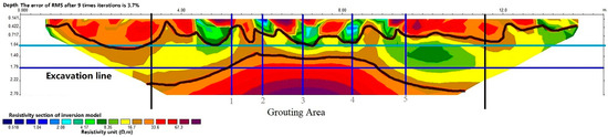 - Good agreement is found between the ground-penetrating radar and high-density resistivity methods and the two geophysical prospecting methods can both reflect the anti-seepage effectiveness of fracture grouting on site.