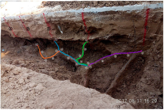 - The pit prospecting result shows that grouting material mainly flows along the axial direction of the embankment, which means that the treatment used to generate directional fracture is proven to be effective. The injection hole interval distance is suggested to be 1.2 m, where the lapping effect of the grouting veins is relatively significant.