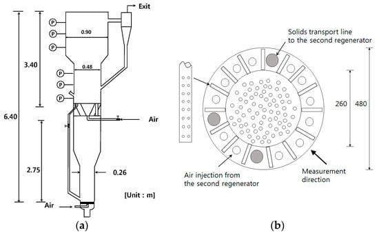Schematic diagram of FCC regenerator: (a) Experimental apparatus; (b) Distributors of upper regenerators.