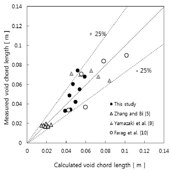 Comparison of the calculated void chord length from the correlation and the experimental data.