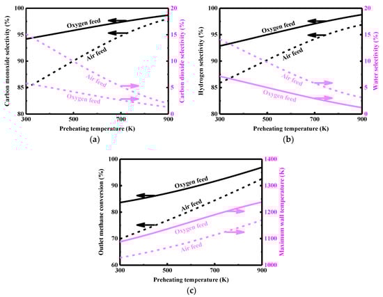 3.2. Effect of Preheating for Oxygen Feed