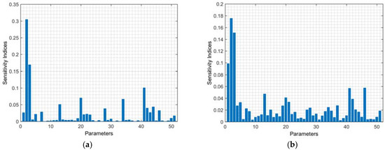 Then the total variance is calculated as . The total sensitivity indices are calculated by substituting the variances calculated above into Equation (4). As the quadratic RSM model accounts for the interaction effect of up to two inputs, the sensitivity index is calculated as follows.