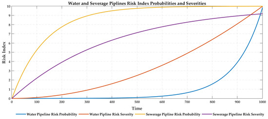 Data generated through different functions for water pipeline and sewerage pipeline risk probabilities and severities.