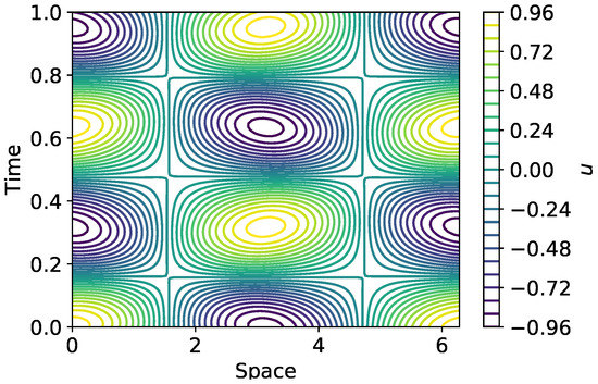 Partial differential equations (PDEs) are allowed within the GEKKO environment through manual discretization in space with vectorized notation. For example, Listing 1 shows the numerical solution to the wave equation shown in Equation (7) through manual discretization in space and built-in discretization in time. The simulation results are shown in Figure 1.