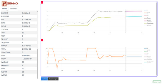 GEKKO combines the model development, solution, and graphical interface for problems described by Equation (2). In this environment, differential equations with time derivatives are automatically discretized and transformed to algebraic form (see Equation (6)) for solution by large-scale and sparse solvers.