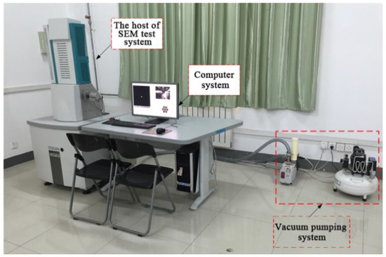 - The axial pressure loading system uses the Electro-hydraulic servo rock mechanics test system of MTS816 to provide a stable and continuous axial load for the specimen during the test, as shown in Figure 2a.