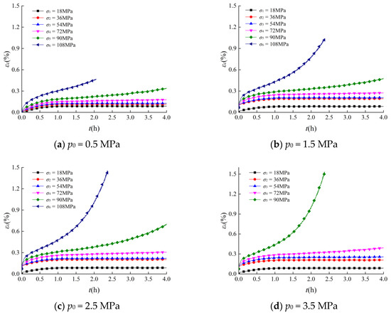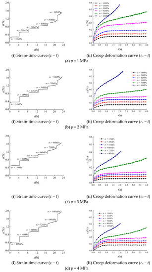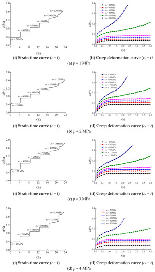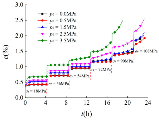 3.2.1. Variation of Creep Deformation of Sandstone with Seepage Pressure