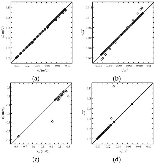 across the material interface, where is hydraulic gradient. Thus, the tangential component of the hydraulic gradient is continuous across the material interface. According to Darcy’s law, the tangential component of the Darcy velocity can be expressed as