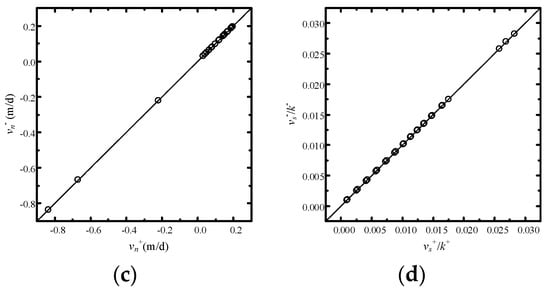 Therefore, the governing differential equation, Equation (7) is transformed a system of linear equations (Equation (34)), which can be easily solved. In addition, the hydraulic head and Darcy velocity can be obtained using Equations (22) and (24), respectively.