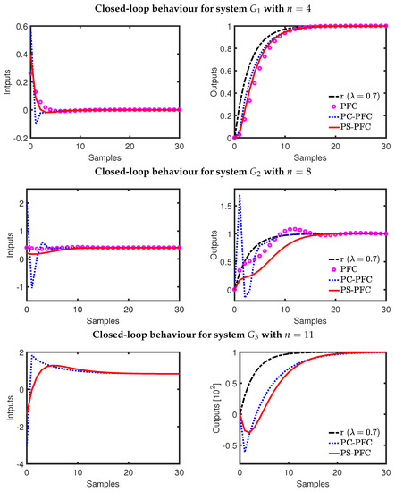The prime purpose of shaping the future input dynamics is to eliminate the effect of unwanted poles in the future predictions. Nevertheless, it is also undesirable to have an overaggressive input activity, which may not be implementable in a real plant. To analyse this issue, the prediction behaviour of PFC, PC-PFC, and PS-PFC for processes