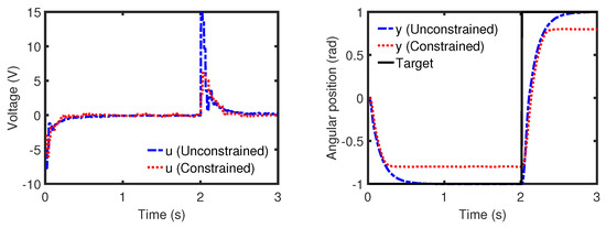 Figure 6 demonstrates the unconstrained and constrained performances of PS-PFC in tracking the servo position. In the unconstrained case, the controller manages to track the target position with the desired convergence speed. As for the constrained case, all the implied input limits (