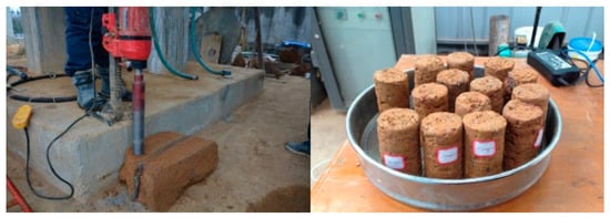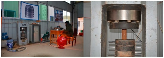 Figure 14 and Figure 15 present the cross section sampling and single cycle compression test in the grouting reinforcement area, respectively.