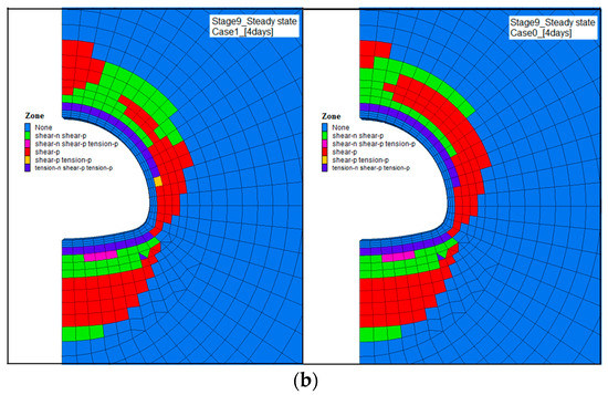 | Stage 3 | Top heading drainage | Hydraulic–mechanical coupling | The pore pressure along the top heading is set to 0 MPa, the model begins to discharge (4 days) 2. |