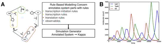 - Danos, V.; Feret, J.; Fontana, W.; Krivine, J. Scalable Simulation of Cellular Signaling Networks. In Asian Symposium on Programming Languages and Systems; Springer Berlin Heidelberg: Berlin/Heidelberg, Germany, 2007; pp. 139–157. [Google Scholar] [CrossRef]