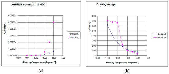 In this case, the optimal sintering temperature, in terms of opening voltage, is approx. 1300 degrees Celsius, which gives a slight sensitivity to varistors but does not endanger the safety of their operation.