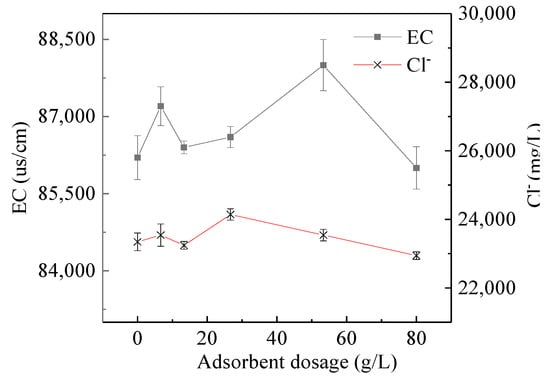 Electrical conductivity (EC) and Cl− vary with adsorbent dosage.