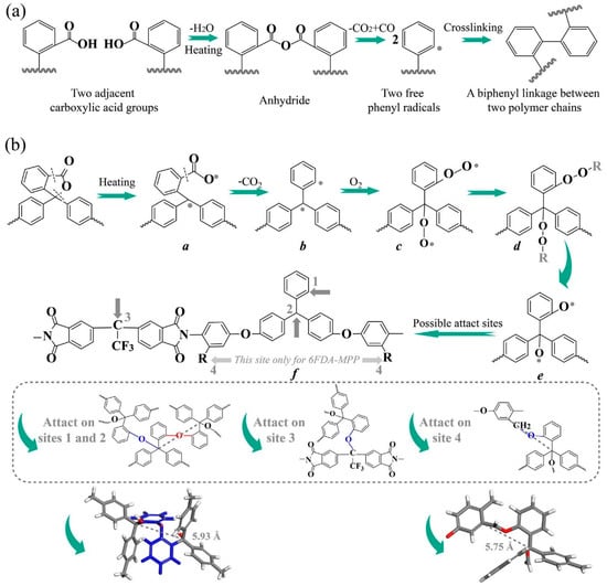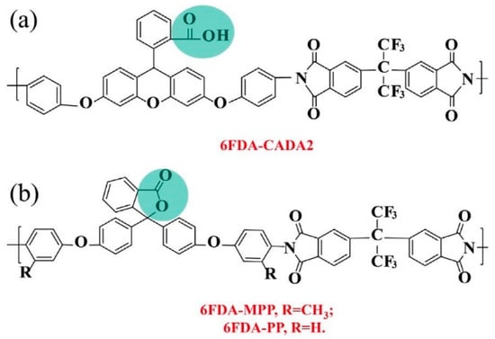 - Zhang, C.; Cao, B.; Li, P. Thermal oxidative crosslinking of phenolphthalein-based cardo polyimides with enhanced gas permeability and selectivity. J. Membr. Sci. 2018, 546, 90–99. [Google Scholar] [CrossRef]