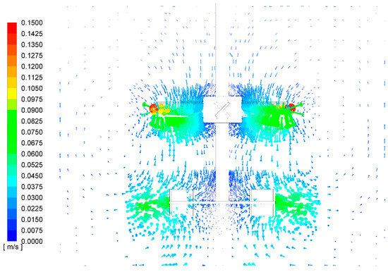 Simulated vector plot of velocity field inside the stirred tank (m/s).