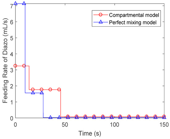 Optimal feeding rate profile solved with CFD-based compartmental model and perfect mixing model.