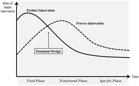 - Utterback, J.M.; Abernathy, W.J. A dynamic model of process and product innovation. Omega 1975, 3, 639–656. [Google Scholar] [CrossRef]
