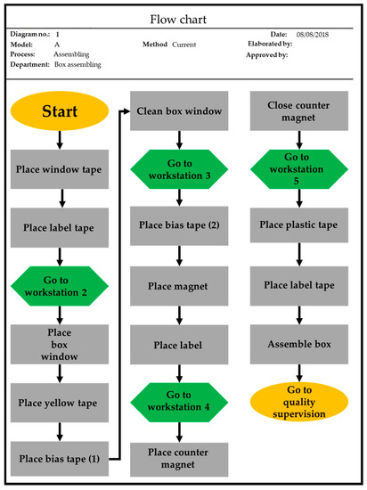 After defining the problem with the information in Table 1, at this stage, a flow chart is developed with the corporation’s current production system, as it is displayed in Figure 2, where in order to have a better understanding about the manufacturing process of model A, a brief description of the operations required are given.