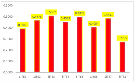 Based on the weight of all sub-criteria defined by the FANP model, the TOPSIS approach was utilized to identify the score of all potential locations. The normalized matrix and normalized weight matrix are shown in