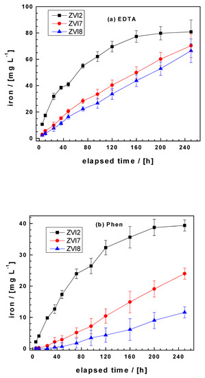 - Pierce, E.M.; Wellman, D.M.; Lodge, A.M.; Rodriguez, E.A. Experimental determination of the dissolution kinetics of zero-valent iron in the presence of organic complexants. Environ. Chem. 2007, 4, 260–270. [Google Scholar] [CrossRef]