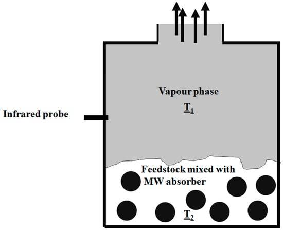 This was confirmed by Undri et al. [24] performing MAP of waste tires. Authors reported the use of an IR thermometer to measure the wall and vapour temperatures together with point-by-point measures using optical fibres. These last measurements clearly showed a higher temperature T2 (up to 719 K close to the tires chips) and a lower temperature T1 (close to 617 K) in vapour phase.