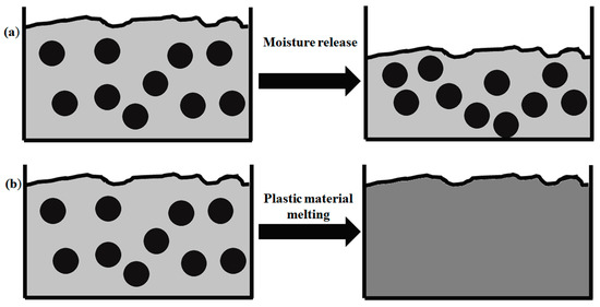 Avoiding the classical MAP set-ups, Wang et al. [80] studied a biomass pyrolysis-fluidized bed reactor using MWs merely as heating source for silicon carbide bed. In this case, the volumetric, selective and fast heating process generally associated with MAP was lost but a high control of process temperature was achieved. Contrary to biomasses MAP, MW pyrolytic treatment of plastic materials show a remarkable advantage related to the enhanced interaction with the MW absorber. As a matter of facts, the first stage of plastic MAP is generally the polymer melting with a corresponding improved dispersion of the MW absorbers within the melted feedstock, as shown in Figure 4.