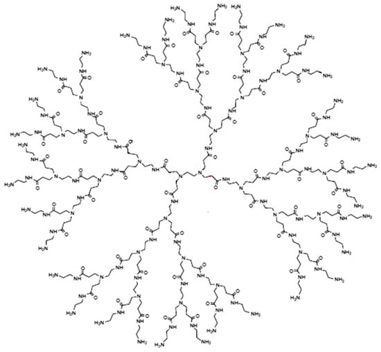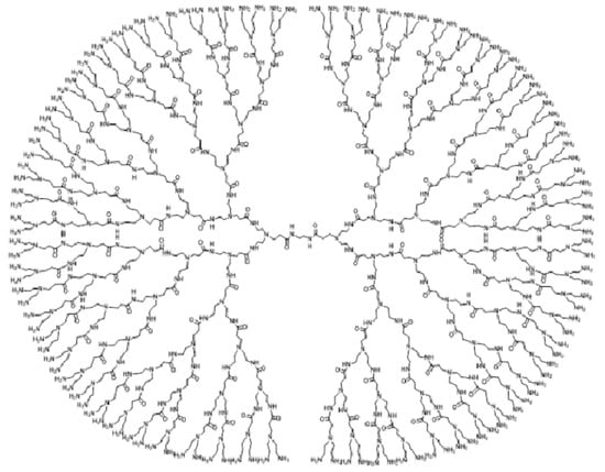 The PAMAM dendrimers are a family of dendrimers which is made of repetitively branched subunits of amide and amine functionality. PAMAM dendrimers have hydrophilic interiors and exteriors, which play a role for its unimolecular micelle properties. Moreover, PAMAM-based carriers increase the possibility of bioavailability of problematic drugs. Hence, PAMAM nanocarriers enhance the potential of the bioavailability of drugs, which are not so soluble for efflux transporters, see [38,39]. Due to these properties, PAMAM dendrimers were extensively studied since their synthesis in 1985, see [40,41]. Donald A. Tomalia brought in the PAMAM (polyamidoamine) as a novel class of polymers, called starburst polymers [40]. From then on, the study of PAMAM dendrimers has remained the most prominent topic of research due to its various applications in different fields, including biomedical applications. For further detail and biomedical application, we refer [42].