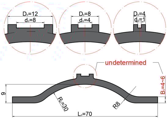 According to the design method of diaphragm size of diaphragm valve, based on the nominal size DN20 series of diaphragm valve, the shape and size of diaphragm are preliminarily determined (Figure 1). The effects of the diaphragm thickness (B0 = 4 mm, B0 = 5 mm, B0 = 6 mm) and the stem loading surface diameter on the diaphragm deformation were investigated.