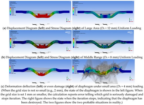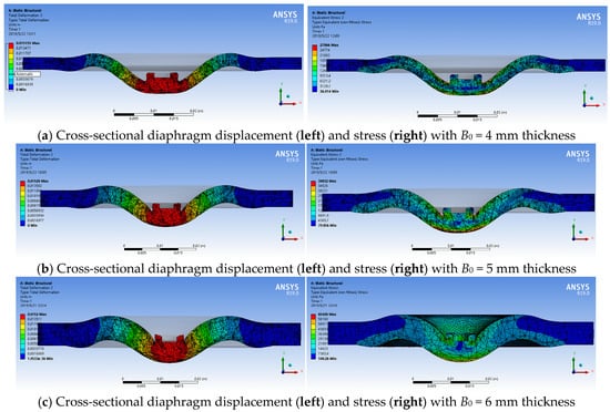 Displacement Diagram and Stress Diagram of Diaphragms with Different Thicknesses.