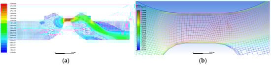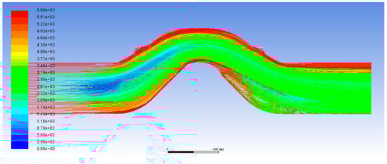 By analyzing the local resistance coefficient diagram (Figure 13c), we can know that the resistance effect of the valve is obvious when the valve is small. The relationship between outlet flow rate and valve opening shows that the linearity of the middle section of flow control is better but the linearity area is not large. In the two opening areas of 0–20% and 80–100%, the flow characteristics of the valve are not good. The reason is that the small opening can easily cause jet flow or even cavitation, and blocking flow is easy to occur, which results in a small flow variation range and a large flow rate. When opening, the throttling effect caused by the change of valve opening is not obvious and the flow control characteristics are not good because the diameter of valve opening is similar to the diameter of pipeline at the entrance of river basin. In the middle opening range, we can know that the flow characteristics are approximately linear, and the flow control performance is good.