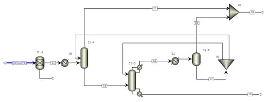 26]. Nitrogen provides most of the cooling capacity through the adiabatic expansion cycle in the turbine expander. A double column cryogenic distillation process is used for separation of syngas and LNG [